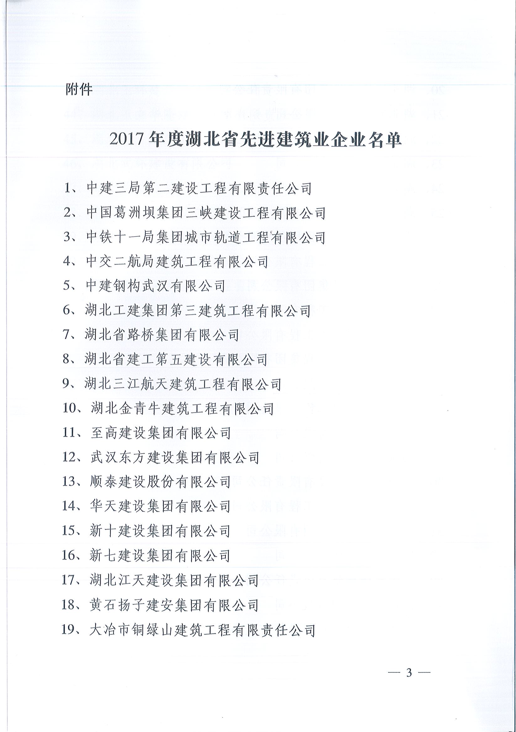 附件: 2017年度湖北省先進建筑業企業名單