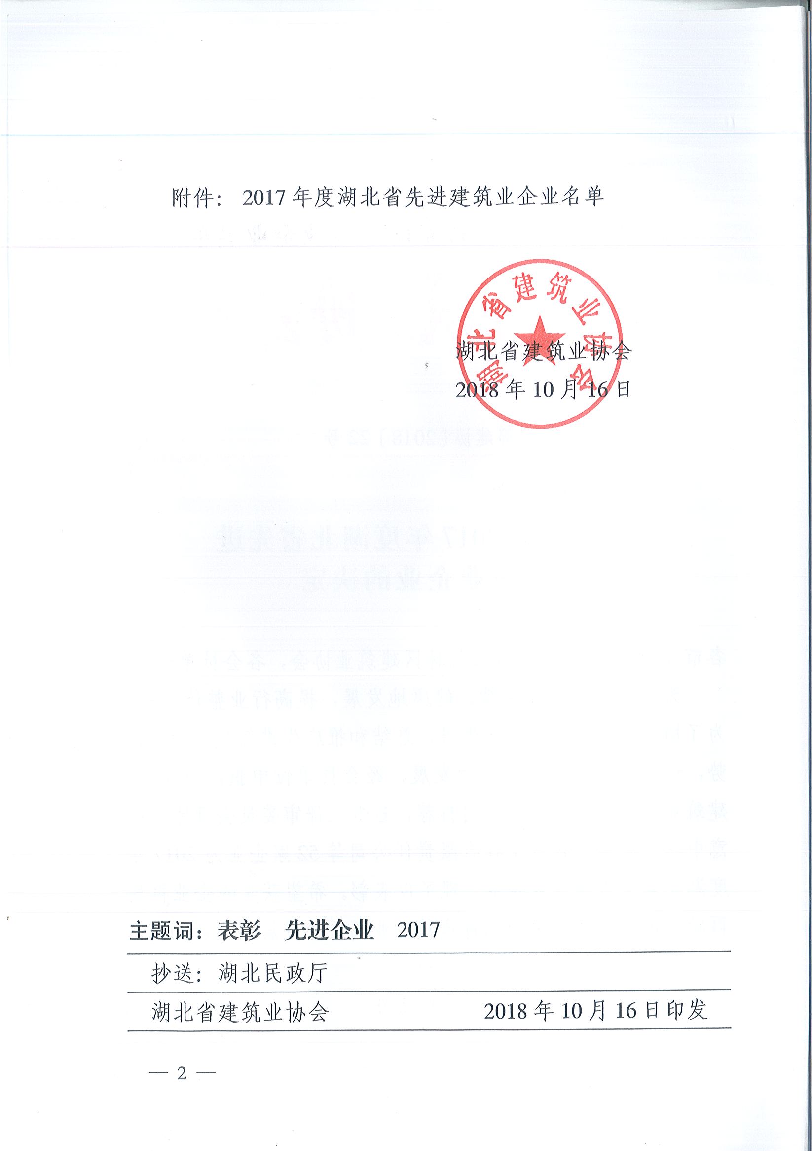 2017年度湖北省先進建筑業企業名單